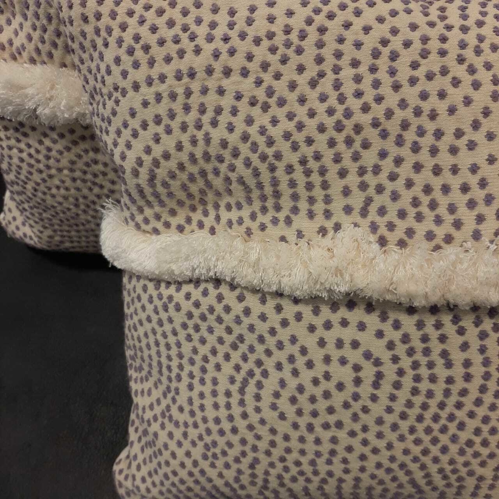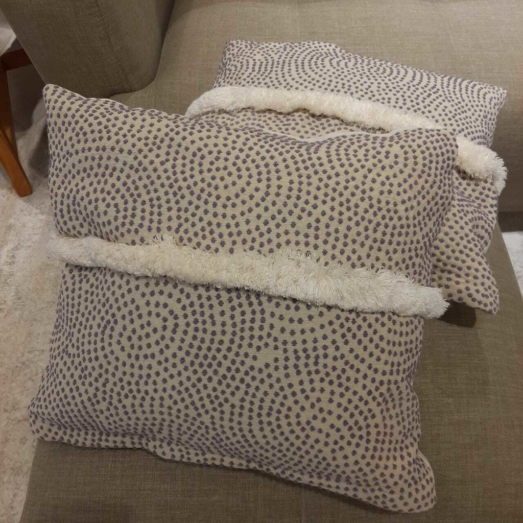 Confeccionado en Tussor liso con bordados y flecos. Relleno de vellón siliconado super soft y forrería en lienzo natural.