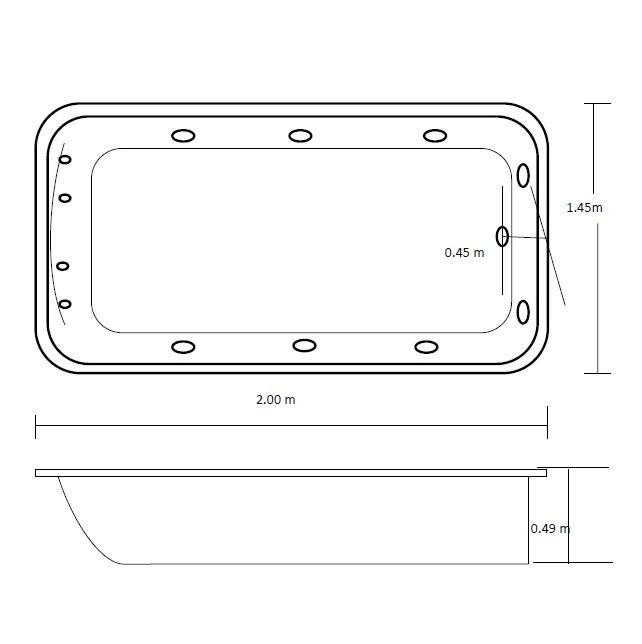 Casco acrílico sanitario blanco termoformado y reforzado con fibra de vidrio y resinas poliéster (PRFV).