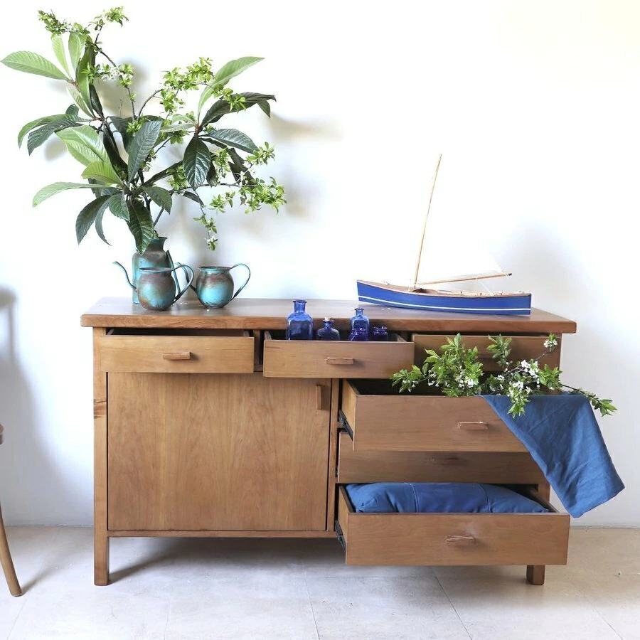 Fabricada en madera de LENGA, con terminación en laca poliuretanica semimate, esta misma protege la madera haciendo mas facil su cuidado y mantenimiento. Cajones con tiradores de madera.