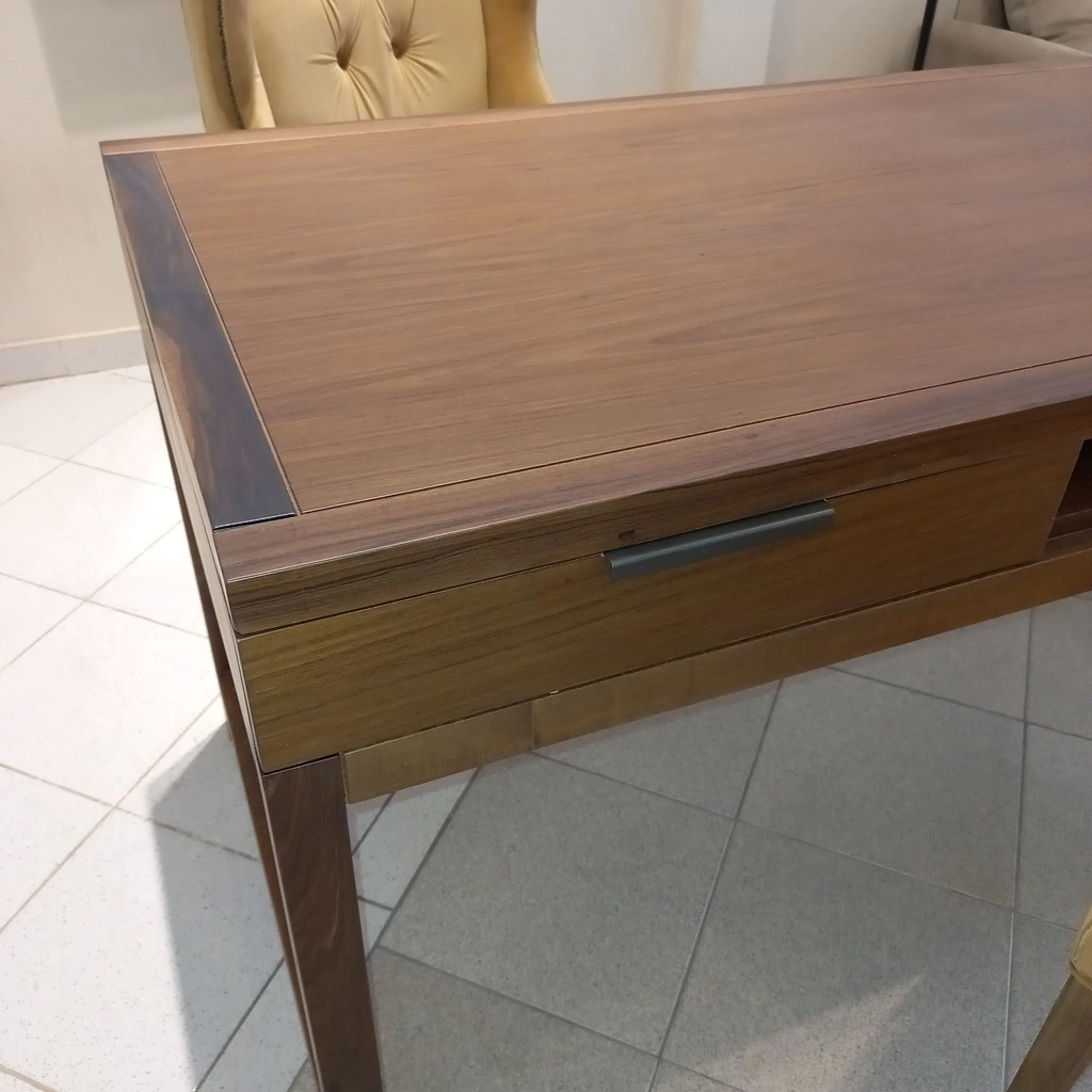 Fabricada en madera GUAYUBIRA o PARAISO. Diseñada con dos cajones y un abierto con herrajes grafito.