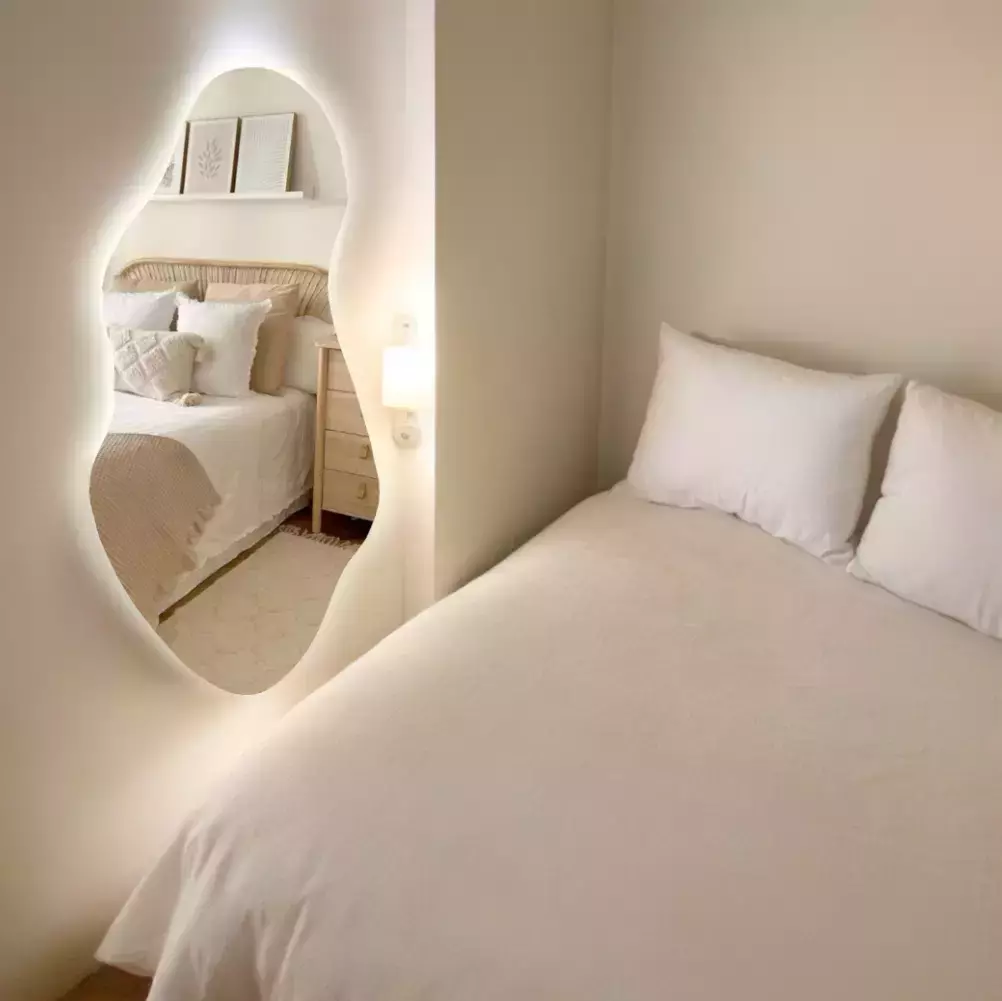 Espejo LED Touch Retroiluminado a la pared con bordes pulidos.