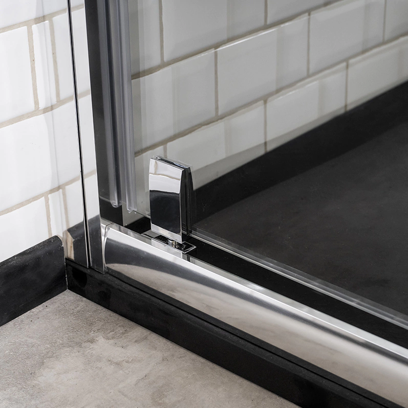 Mampara desde Piso con puertas de abrir y cristal de 6 mm Translúcido con manijón en L// Perfil Aluminio en los 4 lados.