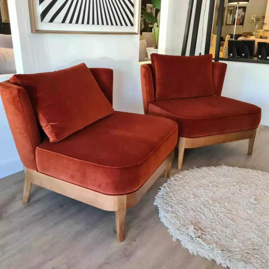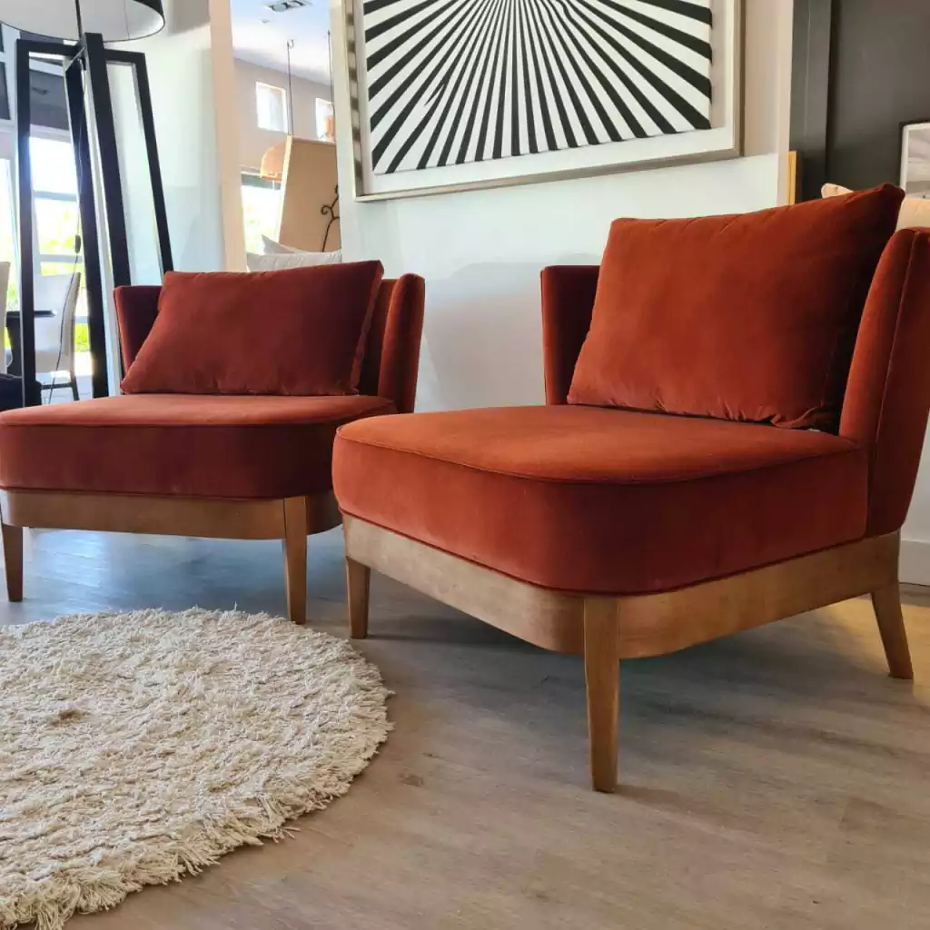 Silloncito diseñado para brindar comodidad y estilo a tu espacio. Fabricado con base de madera y tapizado en tela pana Toluca en un elegante color lacre - lustre miel, este sillón no solo es un mueble, sino un elemento decorativo que realza cualquier ambiente.